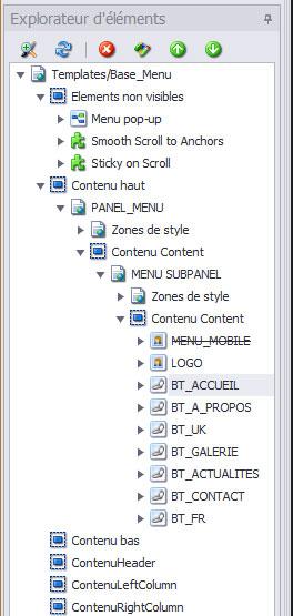 La première partie composant la page d'accueil est l'élément Panneau d'éléments Responsive. Il est associé avec le calque Base_Menu.